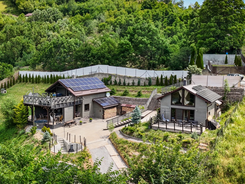 • Casuță din copac cu priveliște spre munte